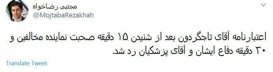 اعتبارنامه تاجگردون چه میشود؟ مجلس انقلابی تر از قبل عمل میکند/ با روحانی به جهنم می روم اما با رییسی به بهشت نمی روم